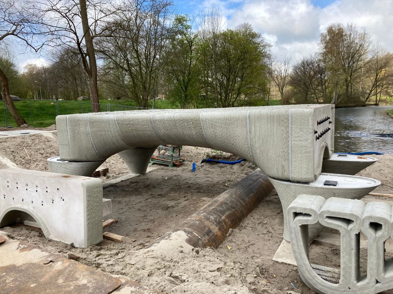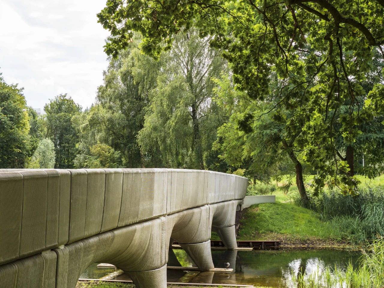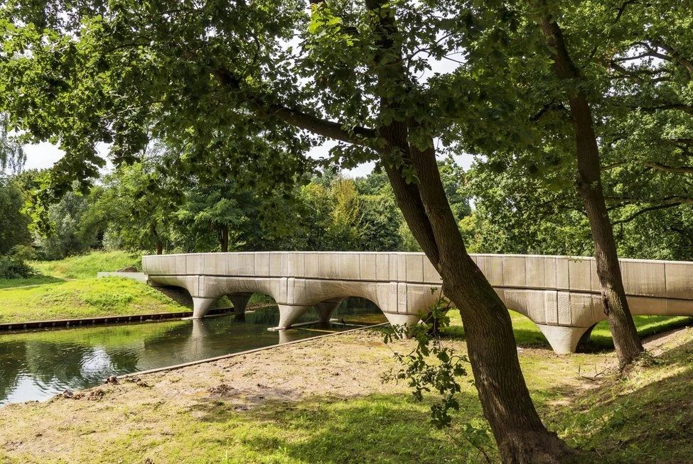 該橋在Saint Gobain Weber Beamix的混凝土打印工廠逐層打印而成,由BAM施工組完成。它不僅是世界上最長(zhǎng)的,也是最大的混凝土橋,建筑師擁有該橋完全的設(shè)計(jì)自由。米切爾·范德克利(Michiel van der Kley)能夠自由地進(jìn)行設(shè)計(jì),不受材料或傳統(tǒng)工藝(如混凝土模板)的限制。